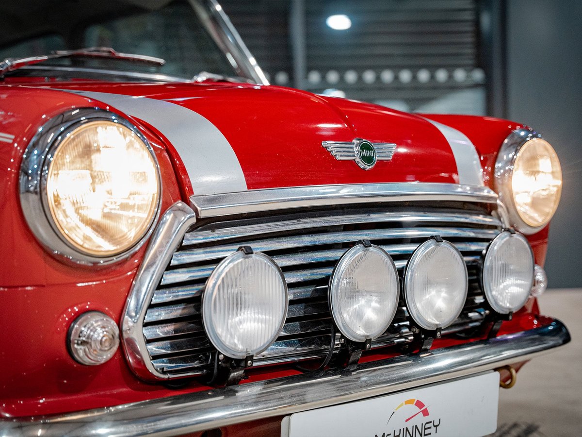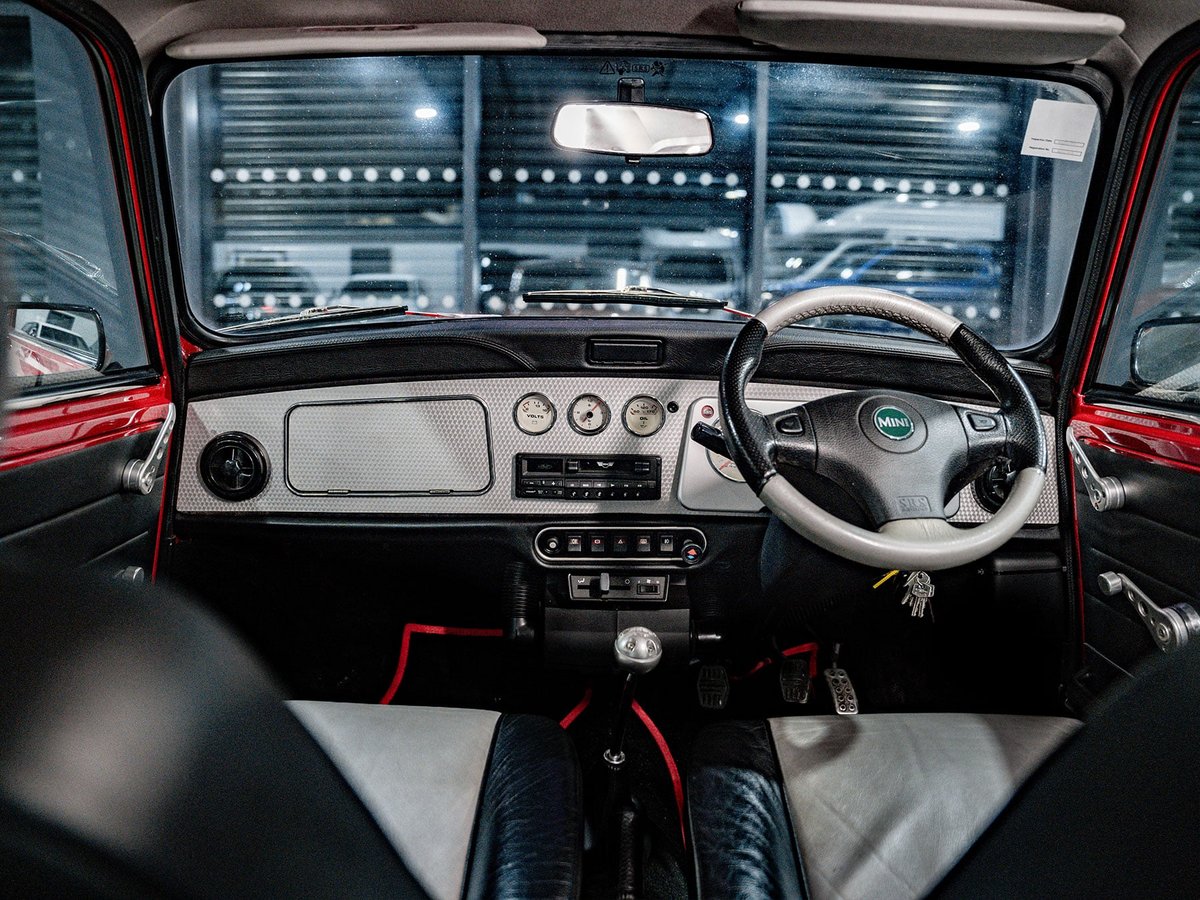 Last of line edition in Solar Red with Platinum Silver roof, mirrors and decals. Full black and silver leather interior and alloy dash, exclusive to the last of line edition. This is one of the last registered classic Mini's!