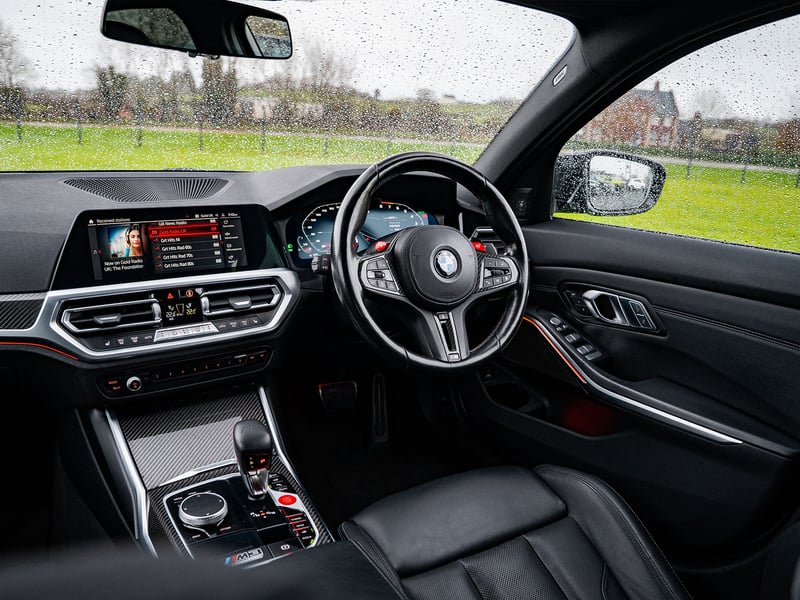 Inside, the M3 Competition combines luxury with track-focused intent. The cabin is trimmed in premium Merino leather, complemented by M-specific detailing and a driver-centric layout designed to keep you fully engaged at speed.