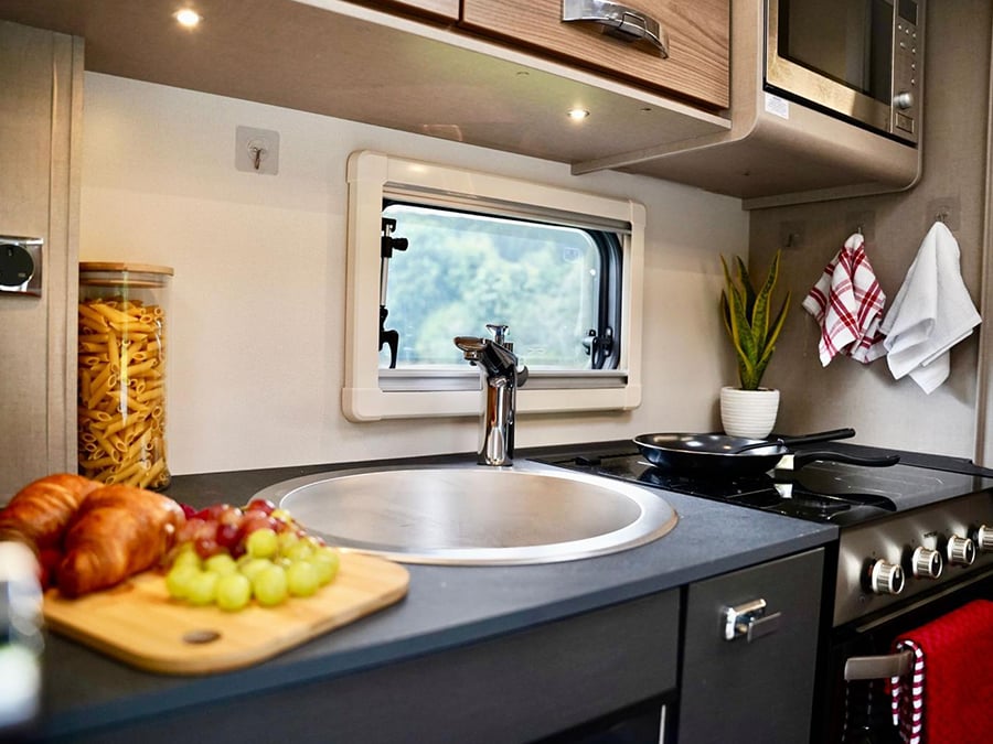 All year round comfort is assured with Truma’s dual fuel blown air heating system and high grade insulation. When rustling up a reviving meal, the fully-equipped kitchen offers plenty of workspace as well as a NEW Dometic Series 10 fridge and a NEW combination thermostatic oven, featuring a three-burner gas hob with electric hotplate. Fresh ‘Vittata’ soft furnishings and robust fittings are well suited to family life, enhanced by durable Swift AirWave foam in seats and backrests for greater comfort, and lightweight memory fibre Duvalay™ mattresses delivering a supremely restful nights’ sleep wherever the journey takes you.
