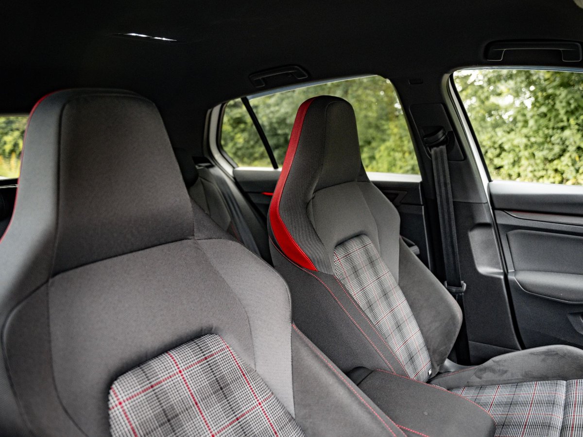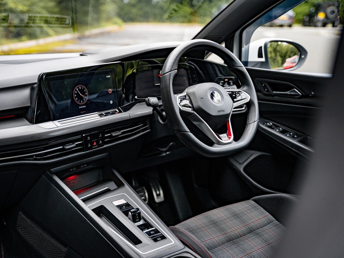 The GTI’s interior is a perfect blend of sportiness and technology. Its iconic chequered seats add a classic touch, complemented by bold red accents throughout. The high-tech Digital Cockpit enhances the driving experience, making the interior both stylish and functional.