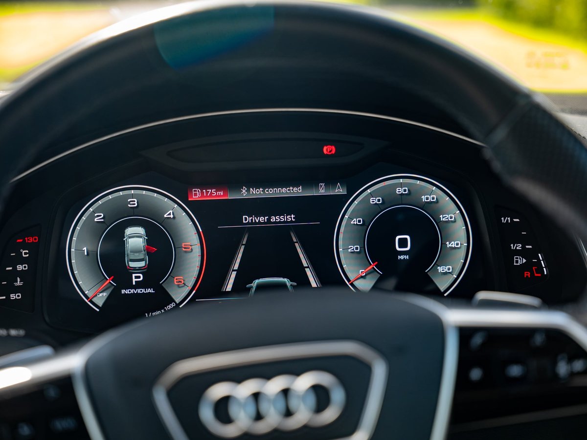Inside, the A6 delivers a modern, tech-forward environment. The cabin features the Audi Virtual Cockpit Plus, an 12.3" OLED driver display, and central 10.1" MMI touchscreen for navigation, media and infotainment. With the Black Edition variant you'll find premium leather seats, S-Line styling cues, ambient lighting, heated front seats, and four-zone climate control. Upholstery, finishes, and ergonomics all aim to create an elegant but driver-focused space, with every control logically placed for intuitive use.