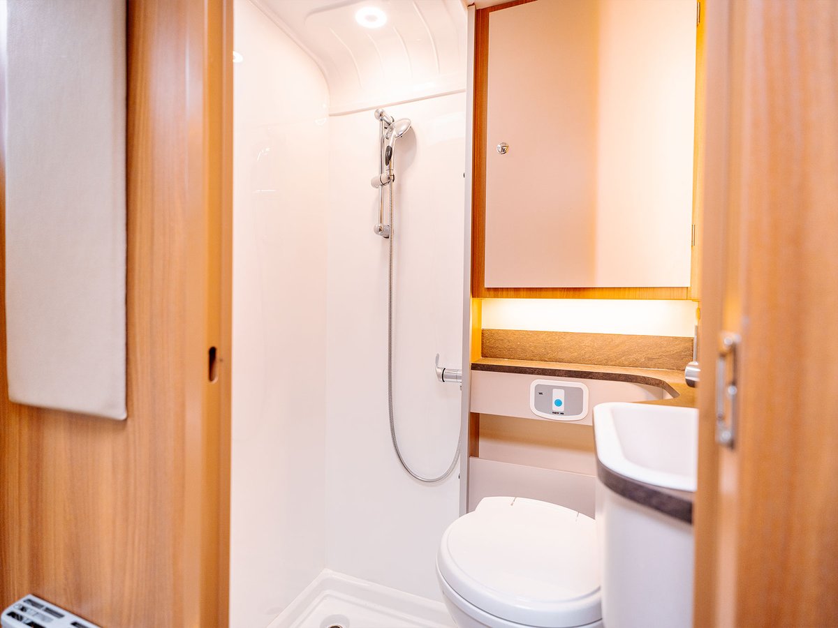 Completely restyled for a more contemporary look, Bailey presents premium finishes, lighter textiles, minimal woodgrain, streamlined new furniture and high-gloss cream lockers with textured metal inlay, while a warm, homely feel is evoked by soft yet efficient lighting and market-leading Truma heating.