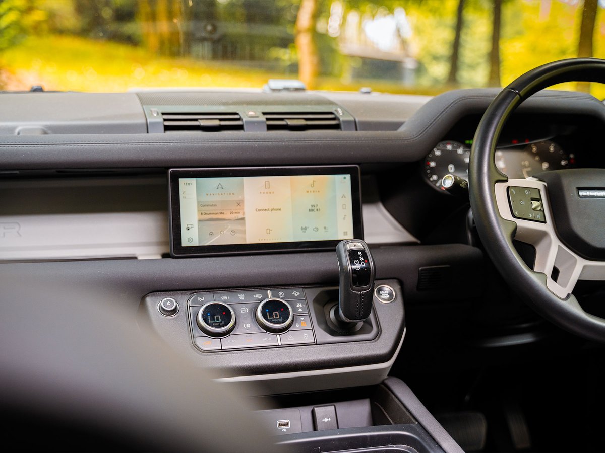 The 2022 Defender balances rugged functionality with modern luxuries. Durable materials and exposed structural elements pay homage to its utilitarian roots, while premium touches add comfort and sophistication. The 10-inch Pivi Pro touchscreen infotainment system, digital driver display, and high seating position offer a commanding yet connected driving experience. With ample space and thoughtful storage solutions, the Defender is as practical as it is comfortable.