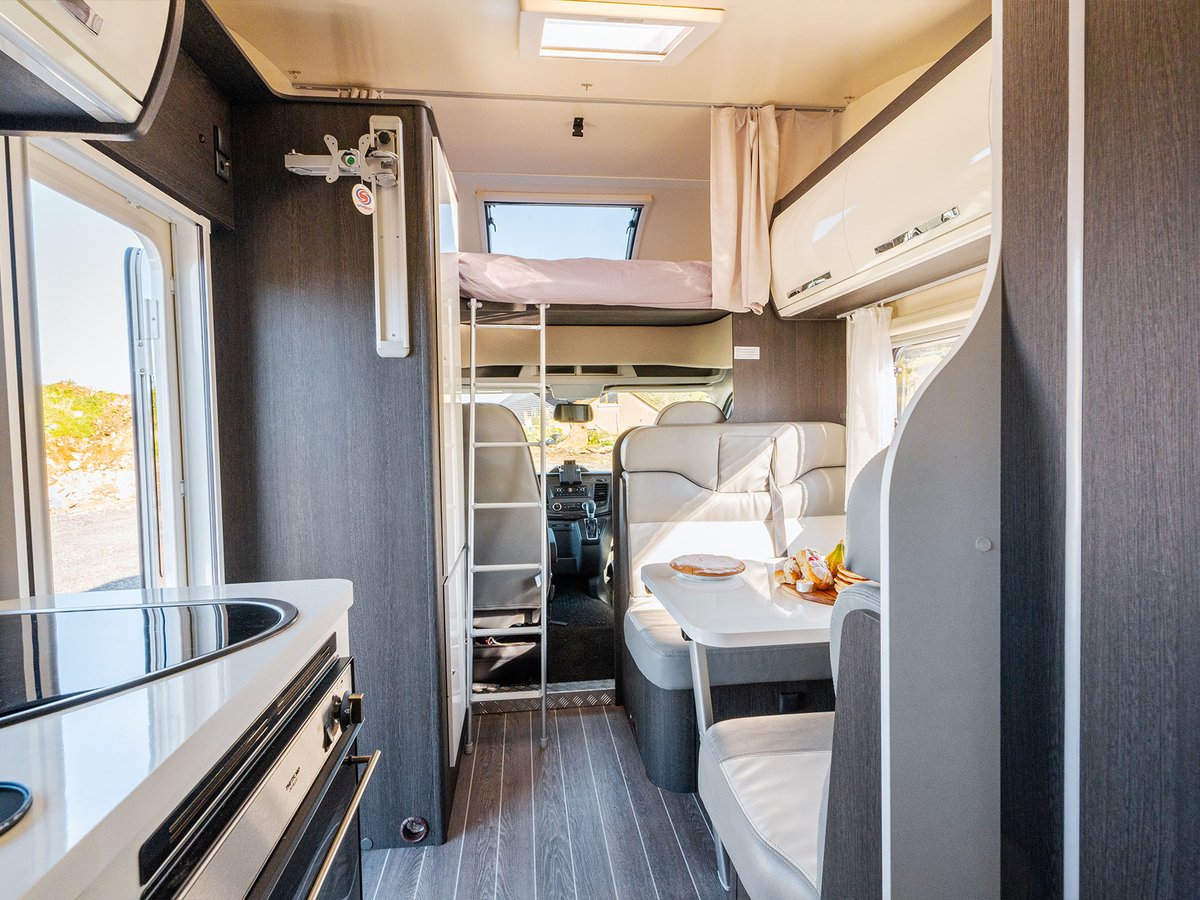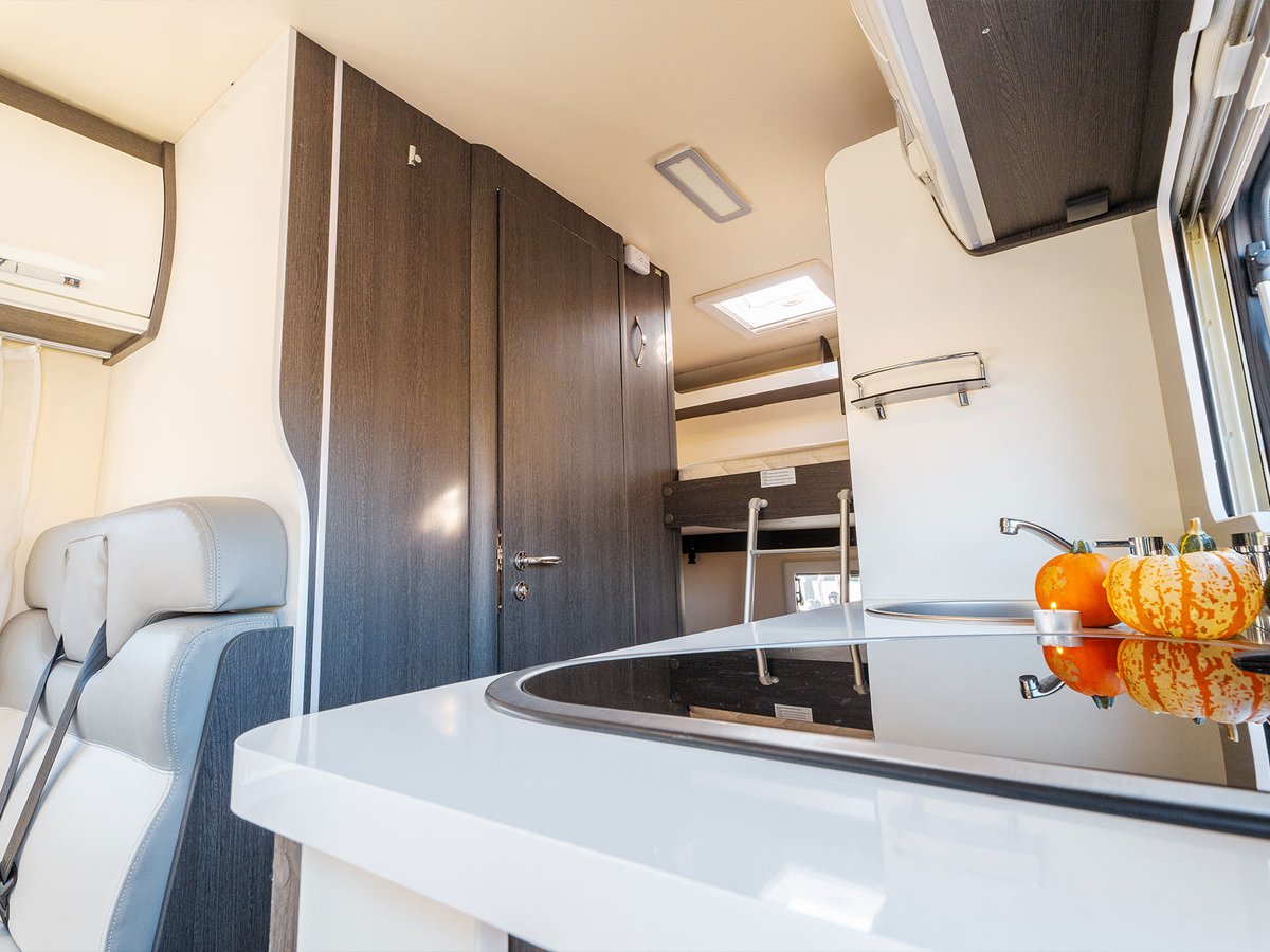 Get the five-star hotel feeling in the Zefiro 675. Rear bunk beds with under bed storage, bedside tables and two wardrobes all closed off by sliding to door give a level of privacy and peacefulness usually only ever dreamed of when away in a hotel. Just in front of this, you’ll discover the domestic style shower cubicle separate from the remainder of the bathroom.