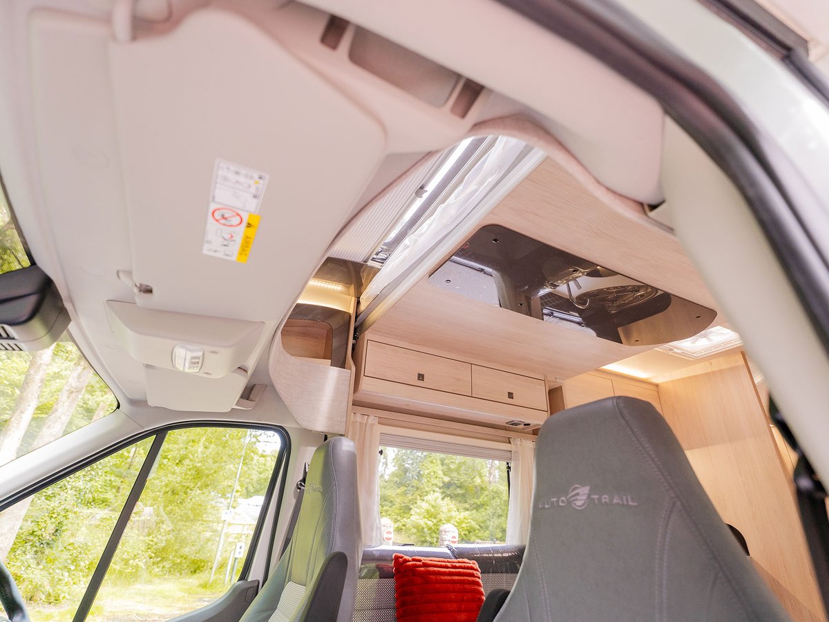 Completely restyled for a more contemporary look, Auto-Trail presents premium finishes, lighter textiles, minimal woodgrain, streamlined new furniture and high-gloss cream lockers with textured metal inlay, while a warm, homely feel is evoked by soft yet efficient lighting and market-leading Truma heating.