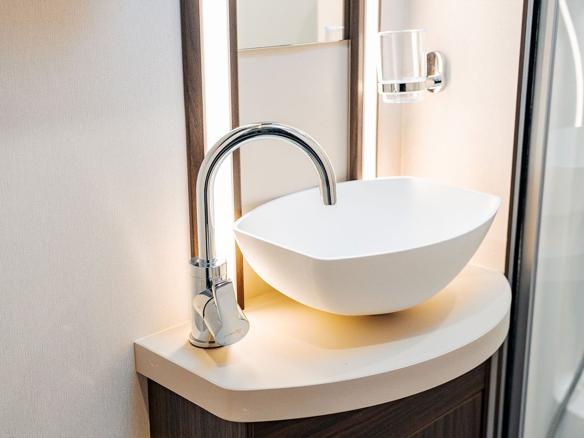 A traditional fixed ‘French-bed’ layout, the Encore 255 accommodates four, with ease. The front lounge converts into a further double bed, with foldaway seating concealed neatly beneath - so even if used as a couple’s motorhome, there’s always the option of taking family or friends, too!