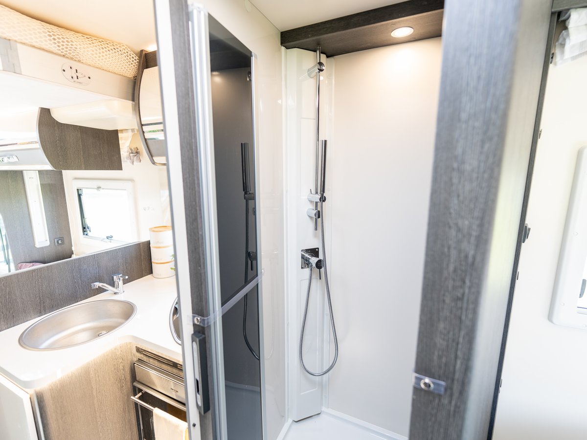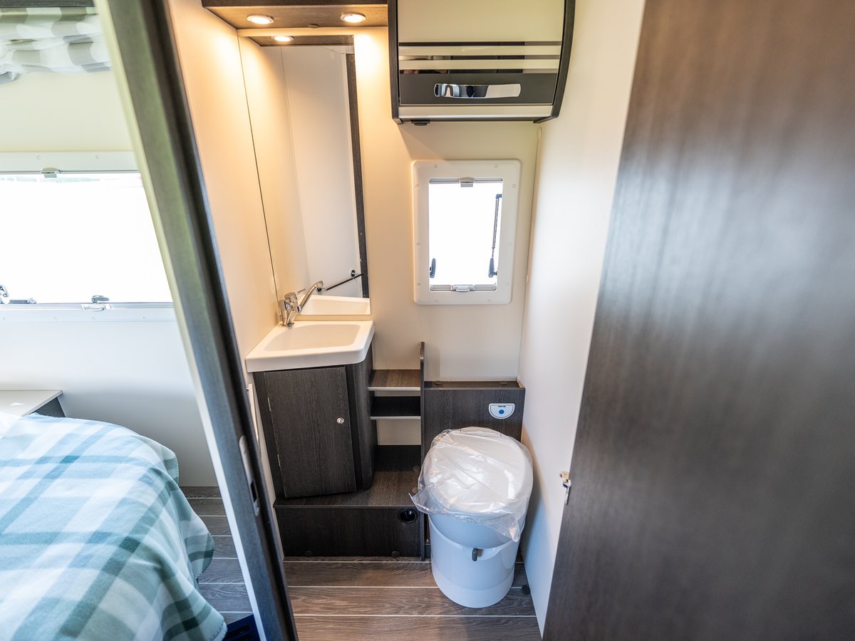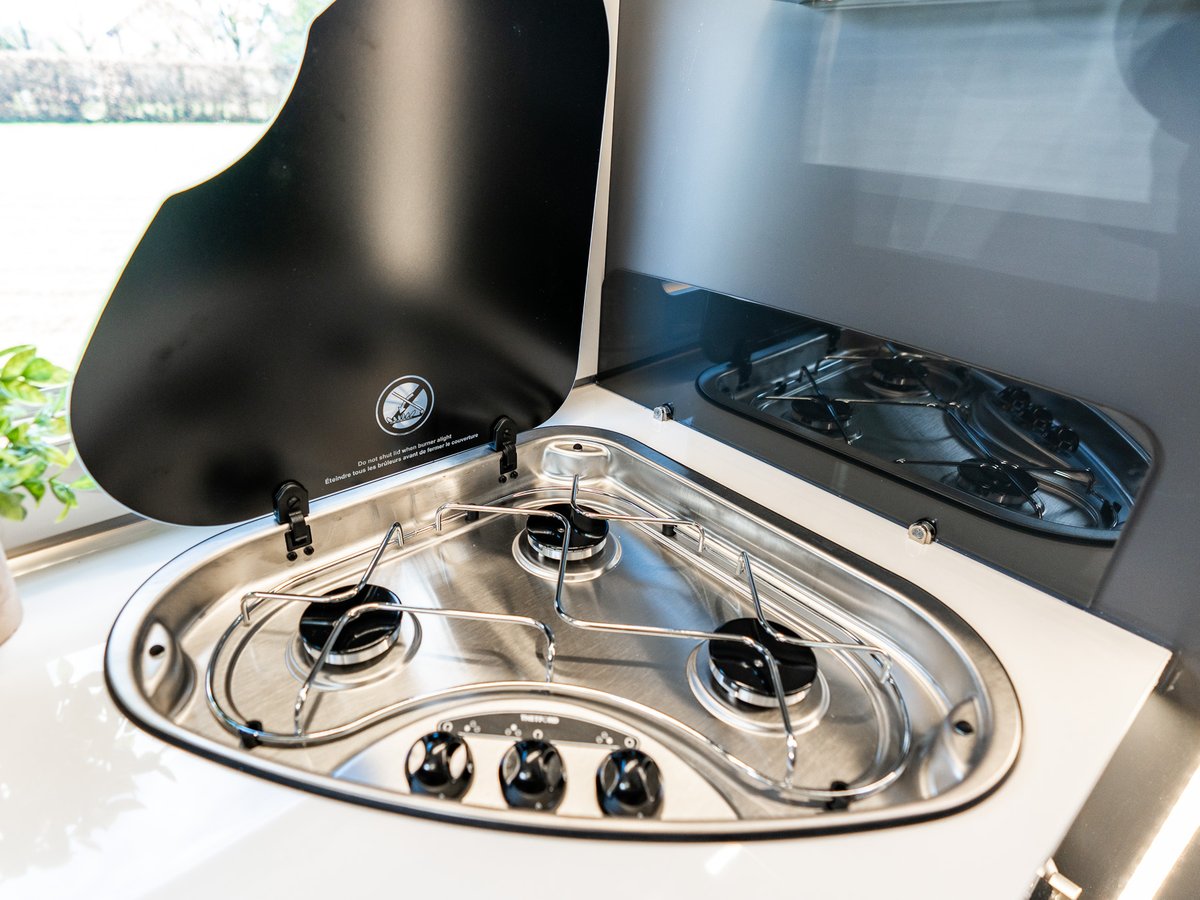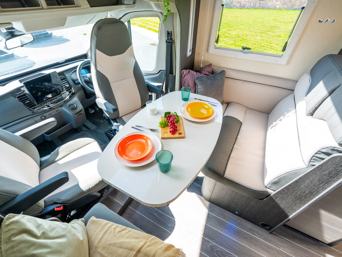 The rear island bed offers hotel-style comfort, while the electric drop-down bed and additional seating area allow up to five people to travel and sleep with ease.