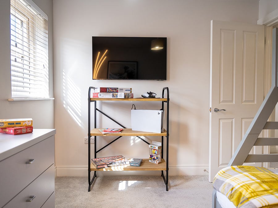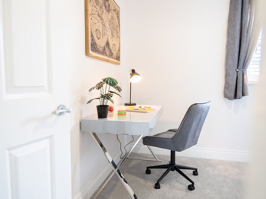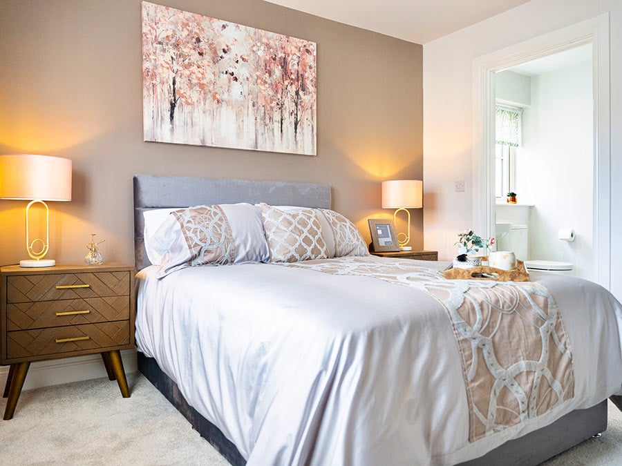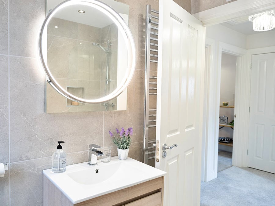 - Recessed chrome down lighters to bathroom and ensuite ceilings