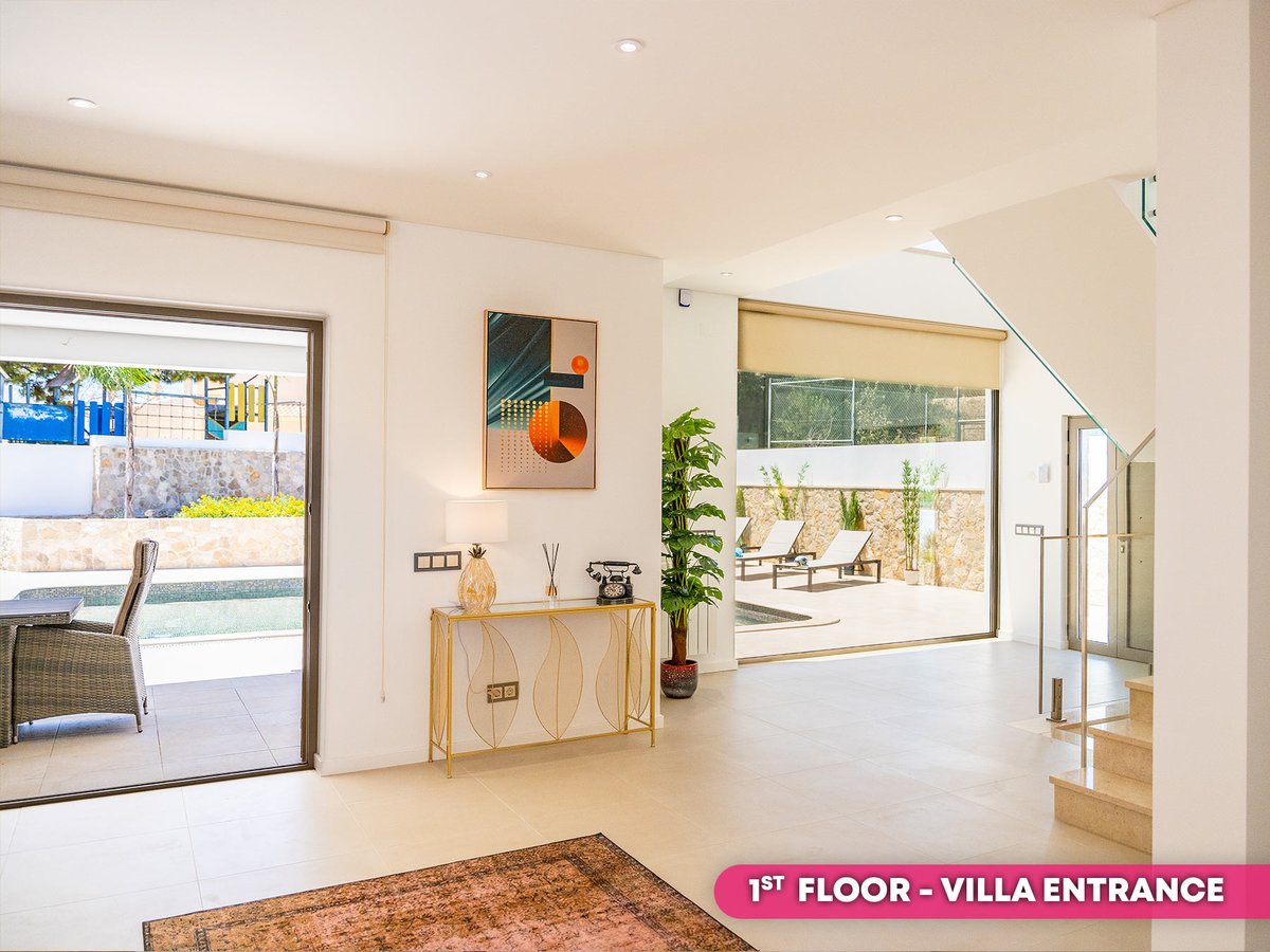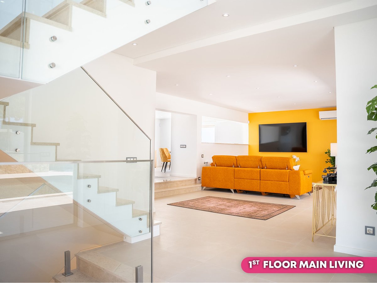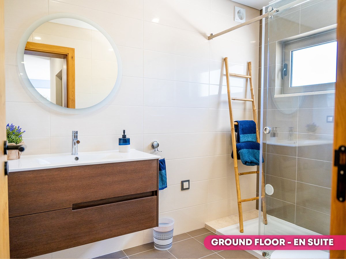 On the ground floor the area boasts a self-contained studio featuring a double or twin bedroom with en suite, as well as a spacious and bright living, dining and kitchen space. This area has its own entrance access and is the perfect spot for teenagers, or other family members who’d like a little privacy. Alternatively, you could choose to rent this space out and STILL enjoy a further four bedroom luxury villa upstairs.