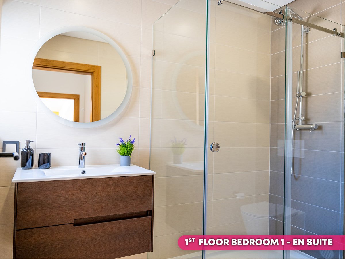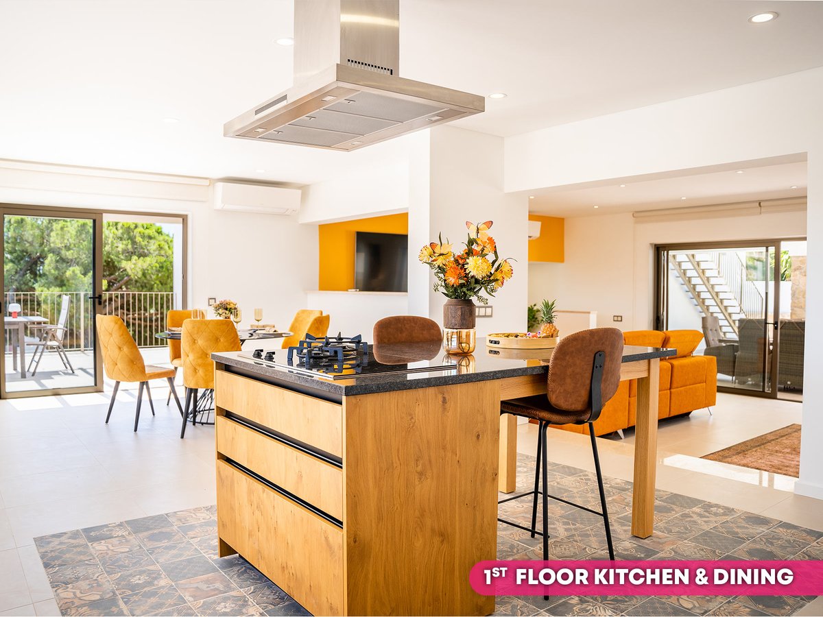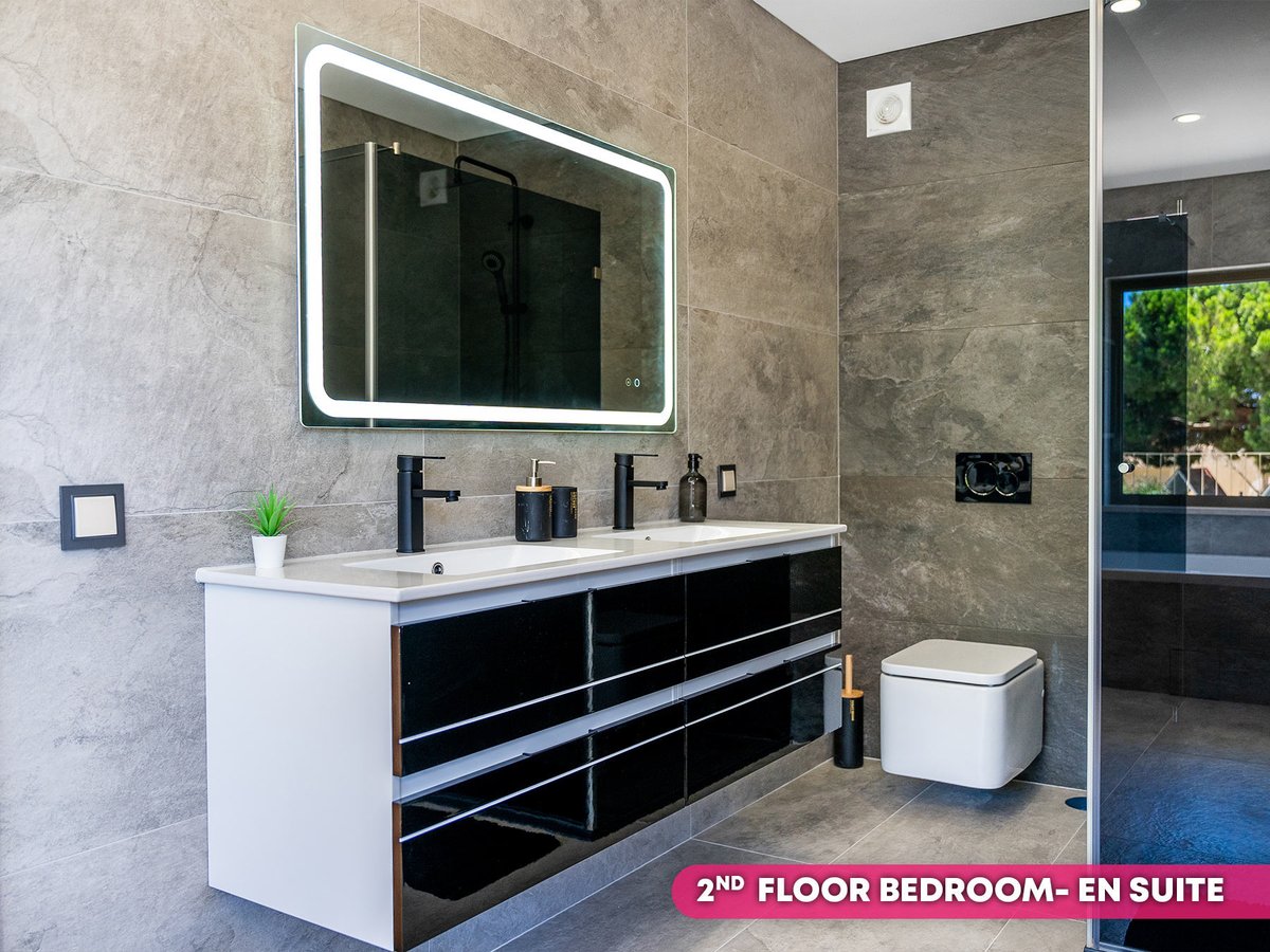 On the ground floor the area boasts a self-contained studio featuring a double or twin bedroom with en suite, as well as a spacious and bright living, dining and kitchen space. This area has its own entrance access and is the perfect spot for teenagers, or other family members who’d like a little privacy. Alternatively, you could choose to rent this space out and STILL enjoy a further four bedroom luxury villa upstairs.