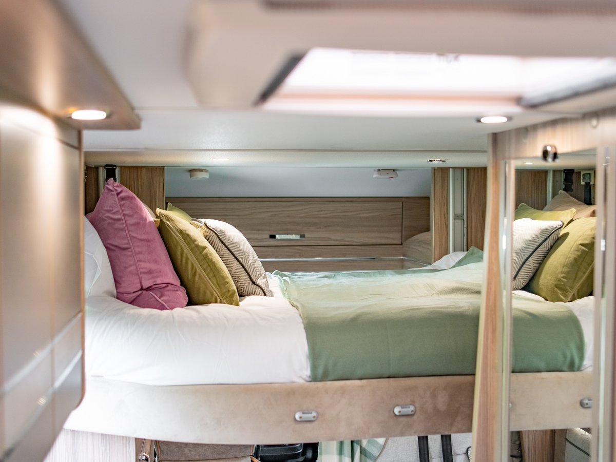Designed for families and groups, the Autoquest 196 offers six comfortable berths and a flexible layout to suit everyone. The rear lounge easily converts into a spacious double bed. At the front, the dinette area quickly transforms into another double, with an electric drop down double above, ensuring there's always room for everyone. Privacy curtains and dividers create seperate sleeping areas, while upgraded rooflights and double glazed windows make the interior feel bright and airy by day and cosy by night.