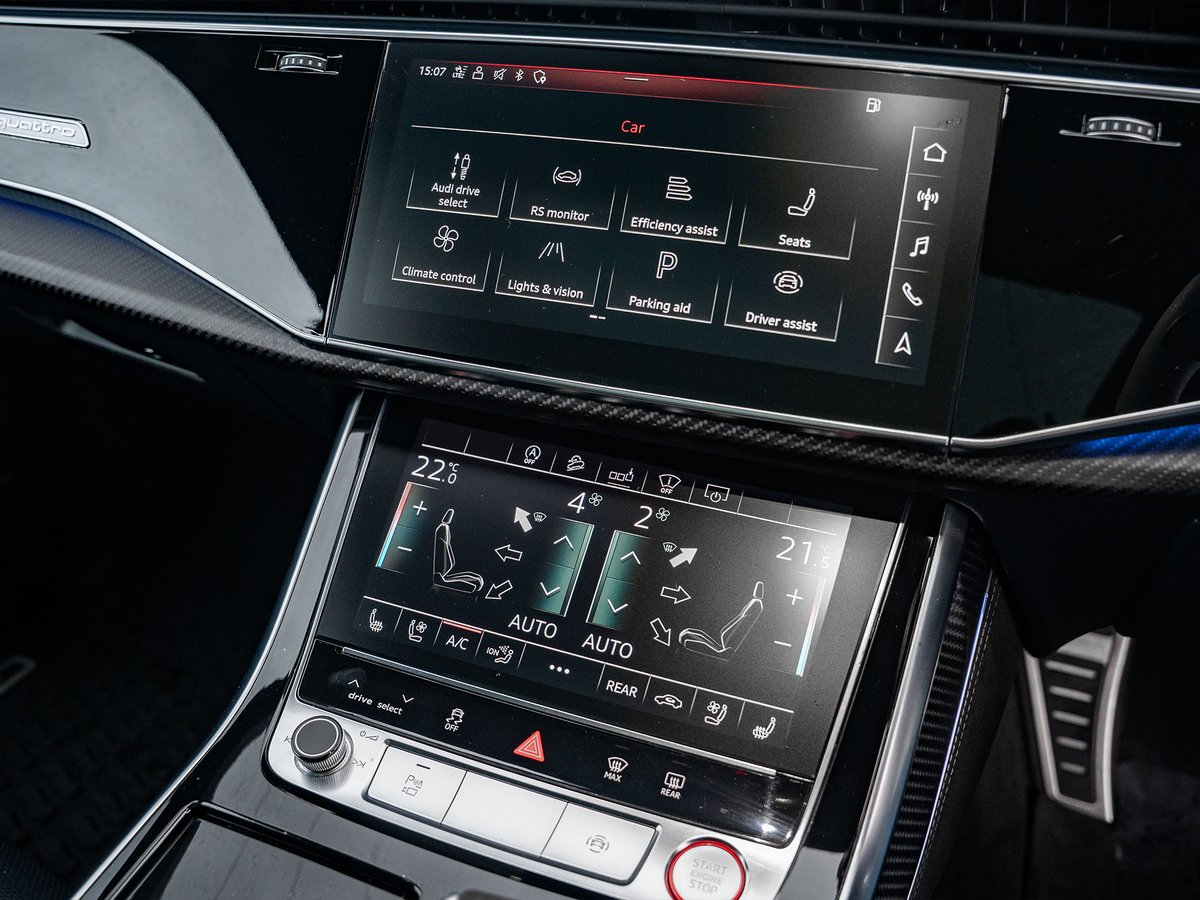 Power is deployed through Audi’s legendary quattro all-wheel drive, giving you relentless traction in all conditions — ideal for UK roads — while RS-specific adaptive air suspension balances comfort with control. Add all-wheel steering as standard and you get a car that feels surprisingly agile in tight city streets, yet rock-solid and stable at higher speeds.