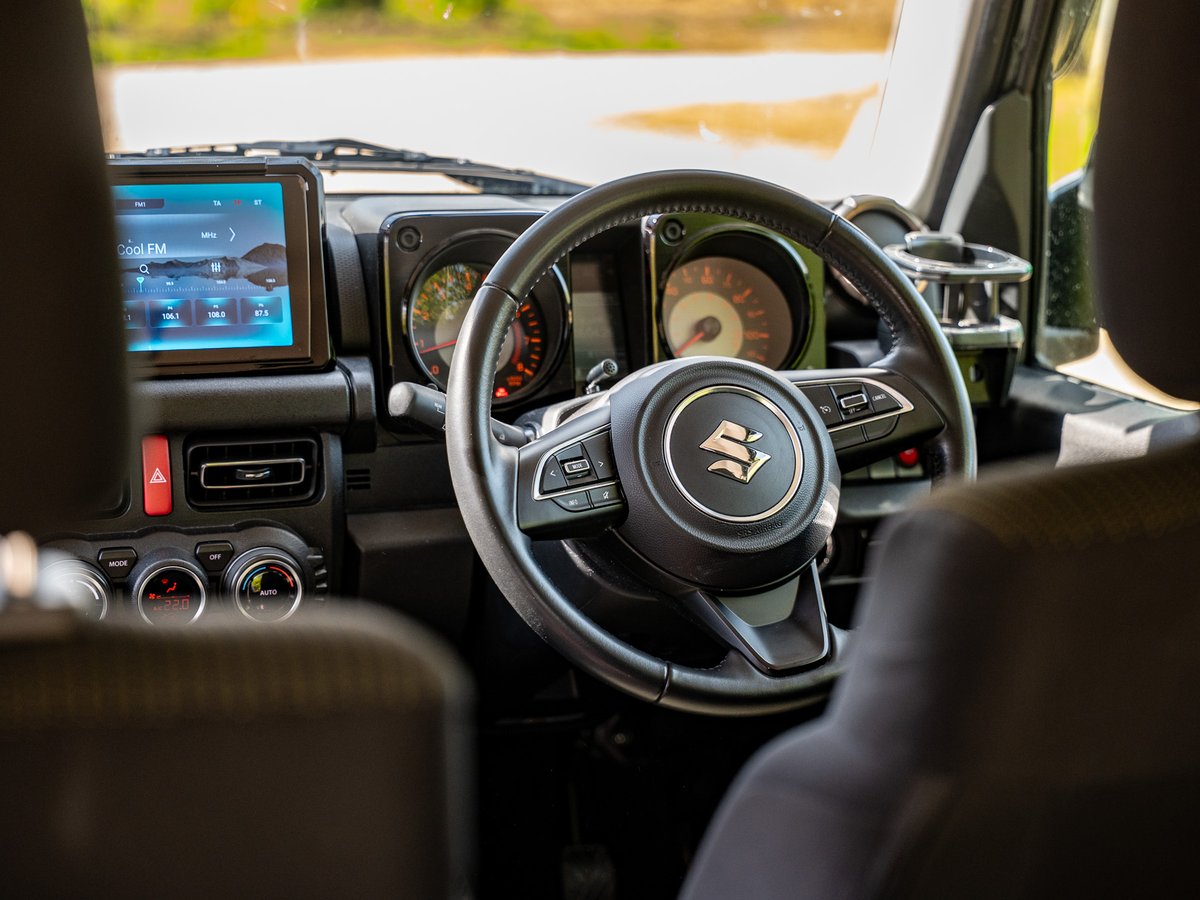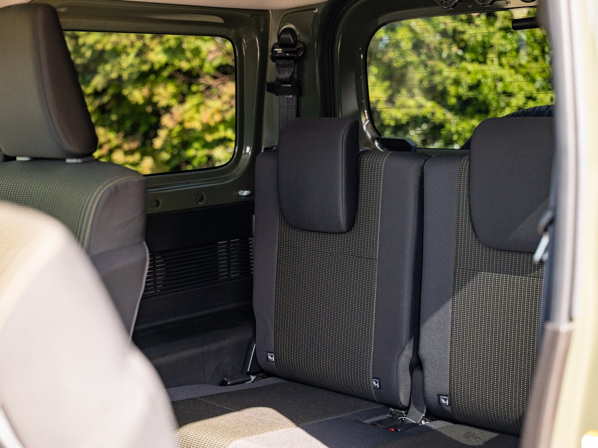 Inside, the Jimny is simple, durable, and built for real use. With seating for four and fold-down rear seats, it offers excellent practicality for both passengers and cargo.