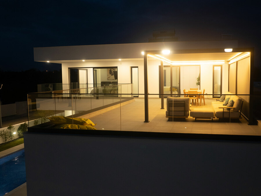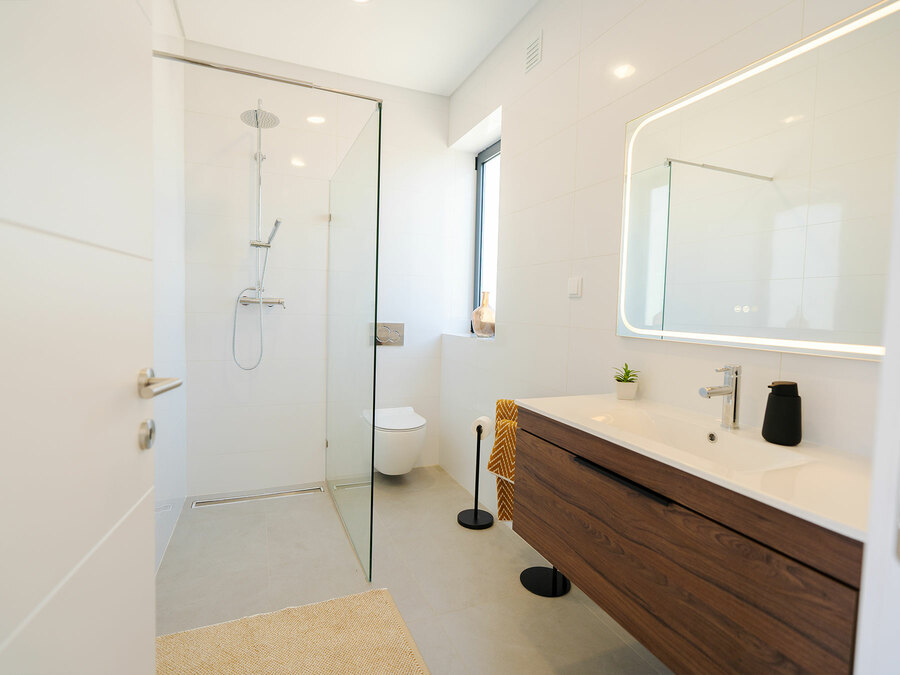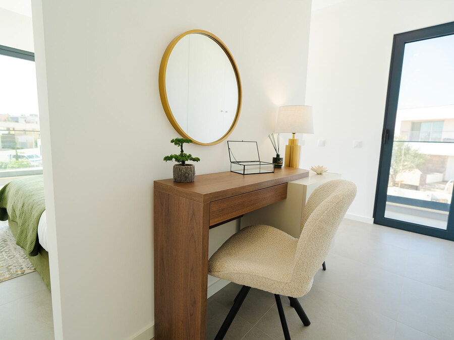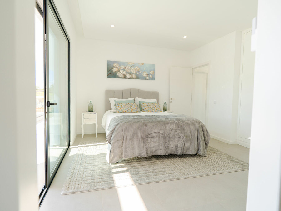 Across three floors, the villa offers every convenience you could imagine. On the ground floor, a poolside bedroom makes early morning swims irresistible, while upstairs two more suites open onto a generous balcony. A private driveway leads to a large garage with so much space to do whatever you can think of. With high ceilings, underfloor heating, superfast fibre broadband, and air-conditioning throughout, this villa has been finished to the highest standard, ready for you to simply unpack and start living the dream.