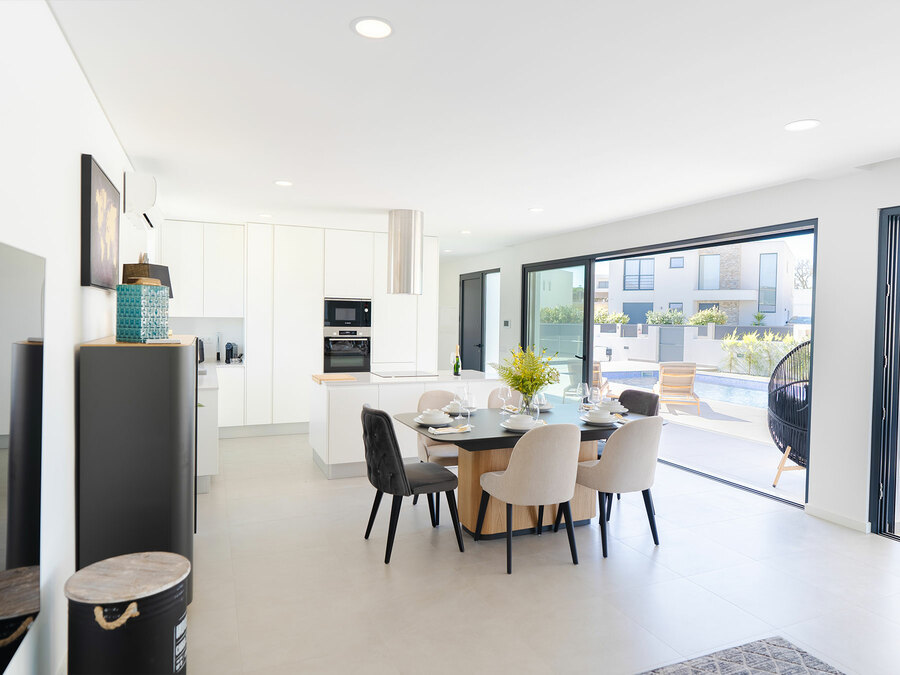 This exceptional three-bedroom villa is a fully furnished escape just 30 minutes from Faro Airport, blending modern luxury with total comfort. Each of the spacious bedrooms comes with its own en-suite, while the master suite boasts a double walk-in wardrobe and terrace access with breathtaking Algarve views. The open-plan kitchen, dining, and living space flows effortlessly outdoors, where you'll find your own heated private pool with a stylish BBQ and dining area designed for entertaining.