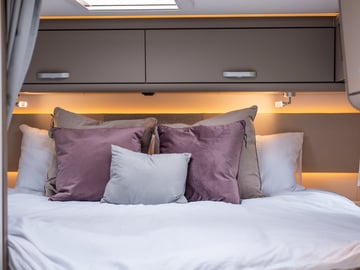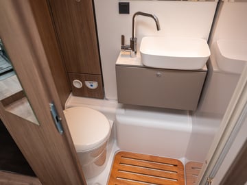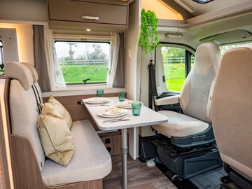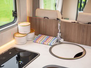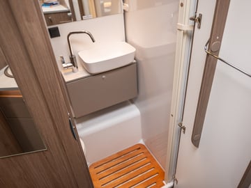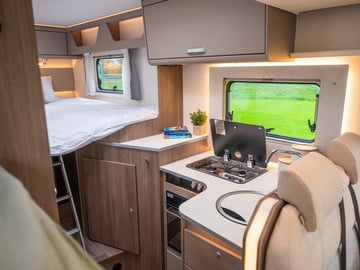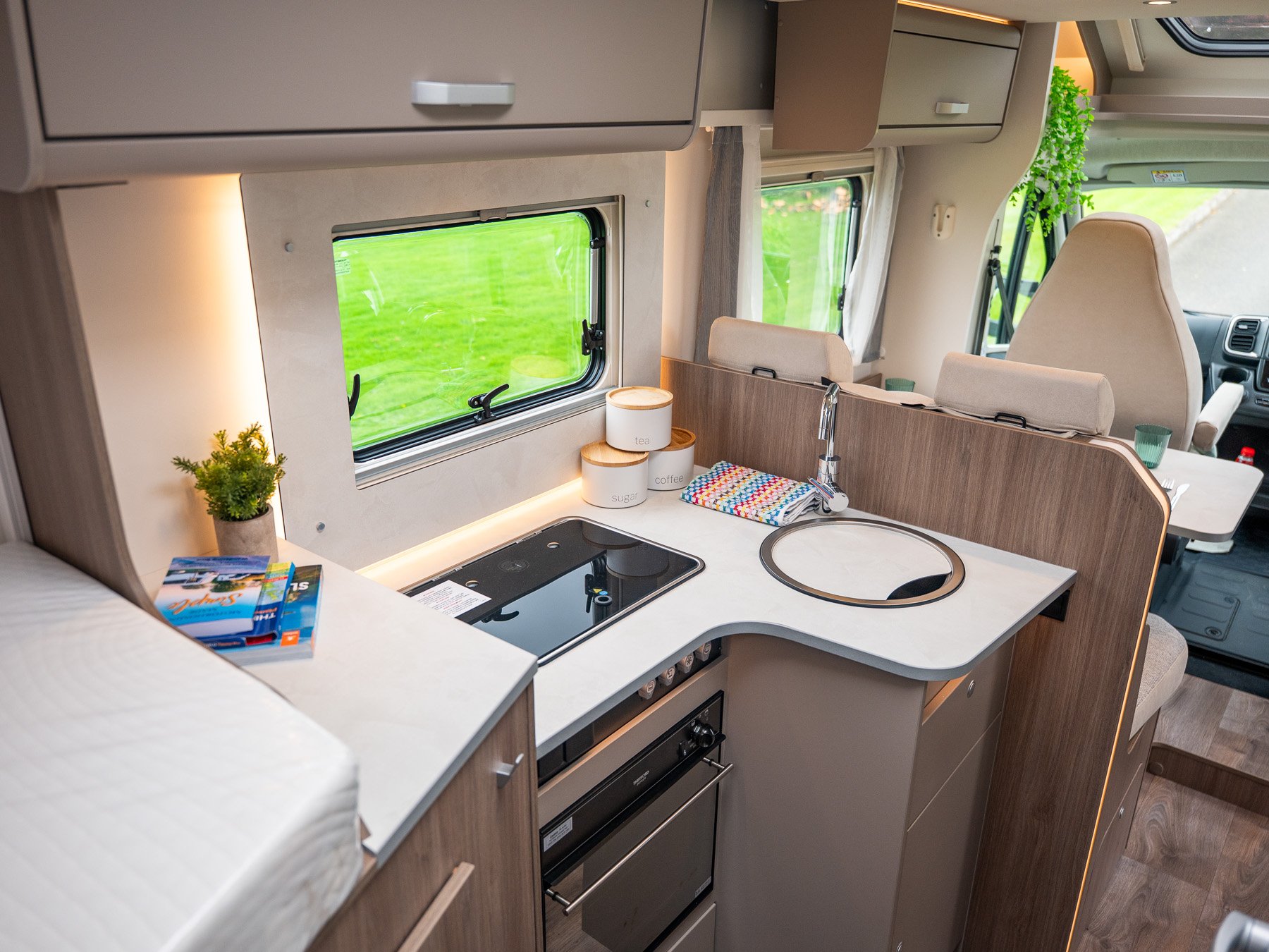 The Carado T338 Pro+ is packed with thoughtful features designed to make life on the road feel effortless. Its sleek central washroom includes a cassette toilet, separate shower cubicle and plenty of storage. Perfect for extended adventures. The fully equipped kitchen offers a three-burner gas hob, oven/grill and a large fridge/freezer, giving you everything you need to cook up your favourite meals on the go.
