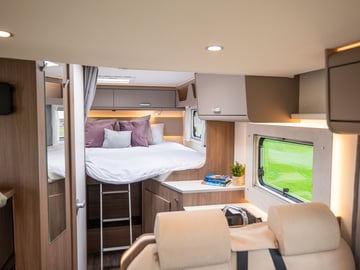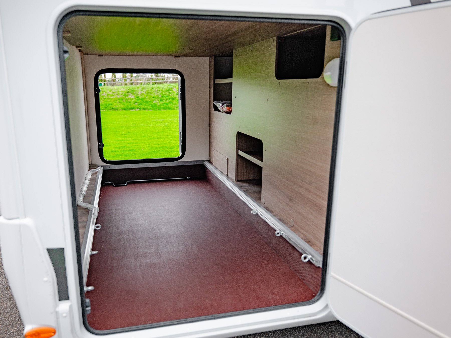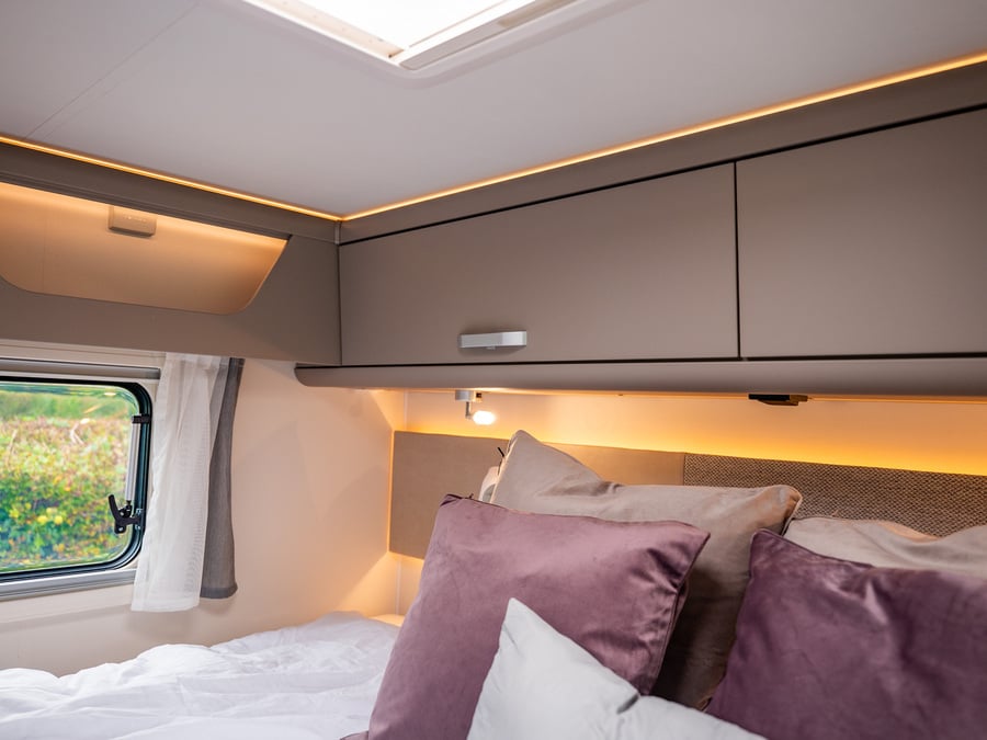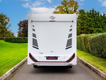 The Carado T338 Pro+ is designed with relaxation in mind. At the rear, you’ll find two comfortable single beds that can easily convert into a large double, offering flexible sleeping arrangements for couples or small families.