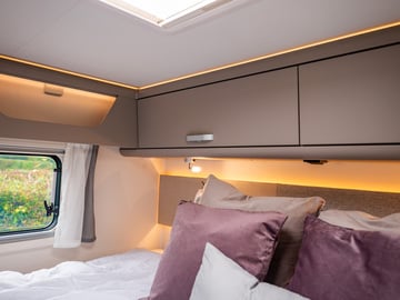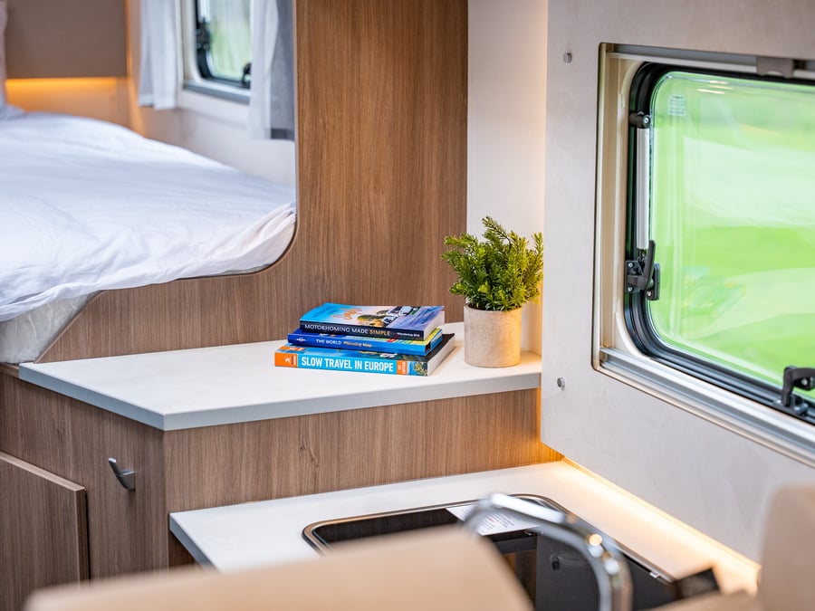 Up front, the lounge area quickly transforms into an additional single bed, perfect for an extra guest or a little one on the go. With clever use of space and high-quality finishes throughout, the T338 Pro ensures every night on the road feels just like home.